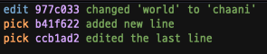3. vim 편집기가 열리면 해당 커밋을 찾아 'pick'을 'edit'으로 수정한 후 저장하고 편집기를 빠져나옵니다. (:wq)