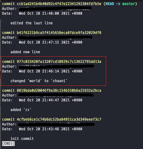 4. 빠져나오면 아래처럼 해당 커밋 시점으로 돌아갑니다.