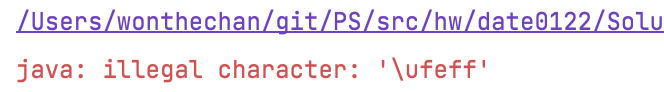 인텔리제이 java: illegal character: '\ufeff' 에러날 때